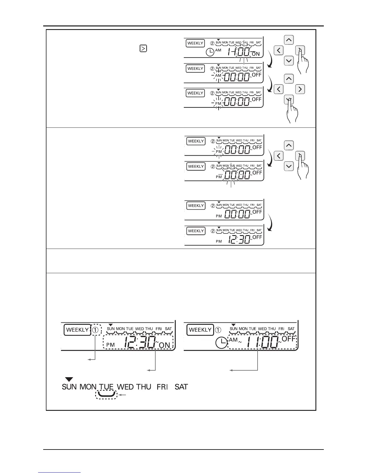 ❈ Indoor unit is turned on to desired temperature if it is configured using up/down button during preset of weekly operation time.