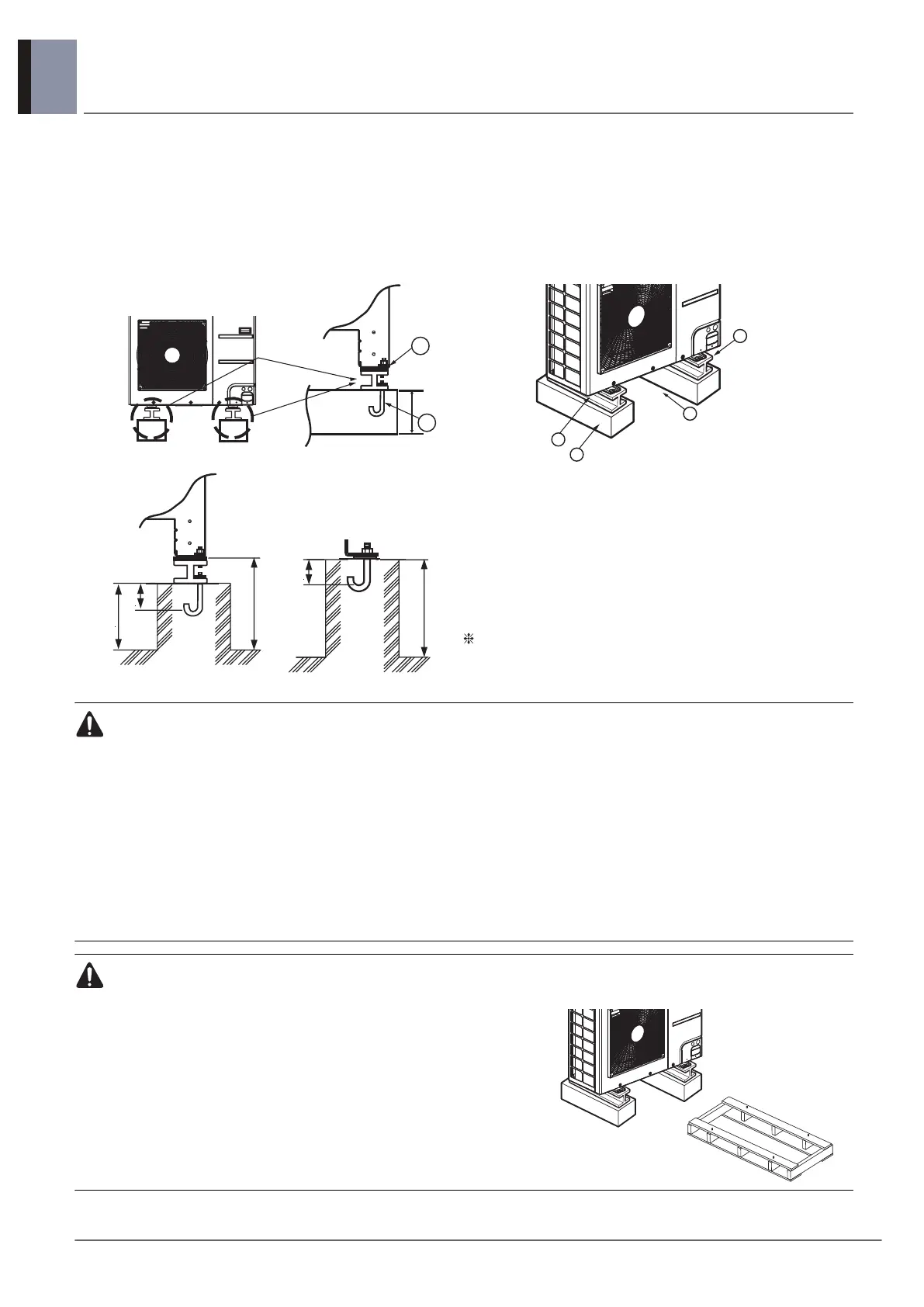 If the support strength is not enough, the outdoor unit may drop and hurt people.