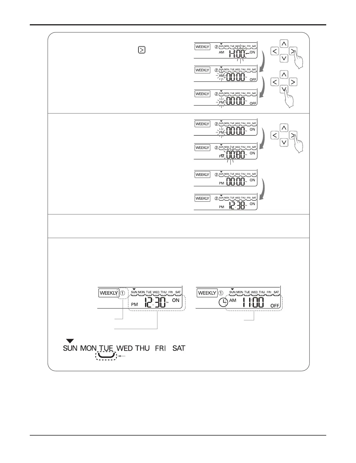 * Indoor unit is turned on to desired temperature if it is configured using up/down button during preset of weekly operation time.