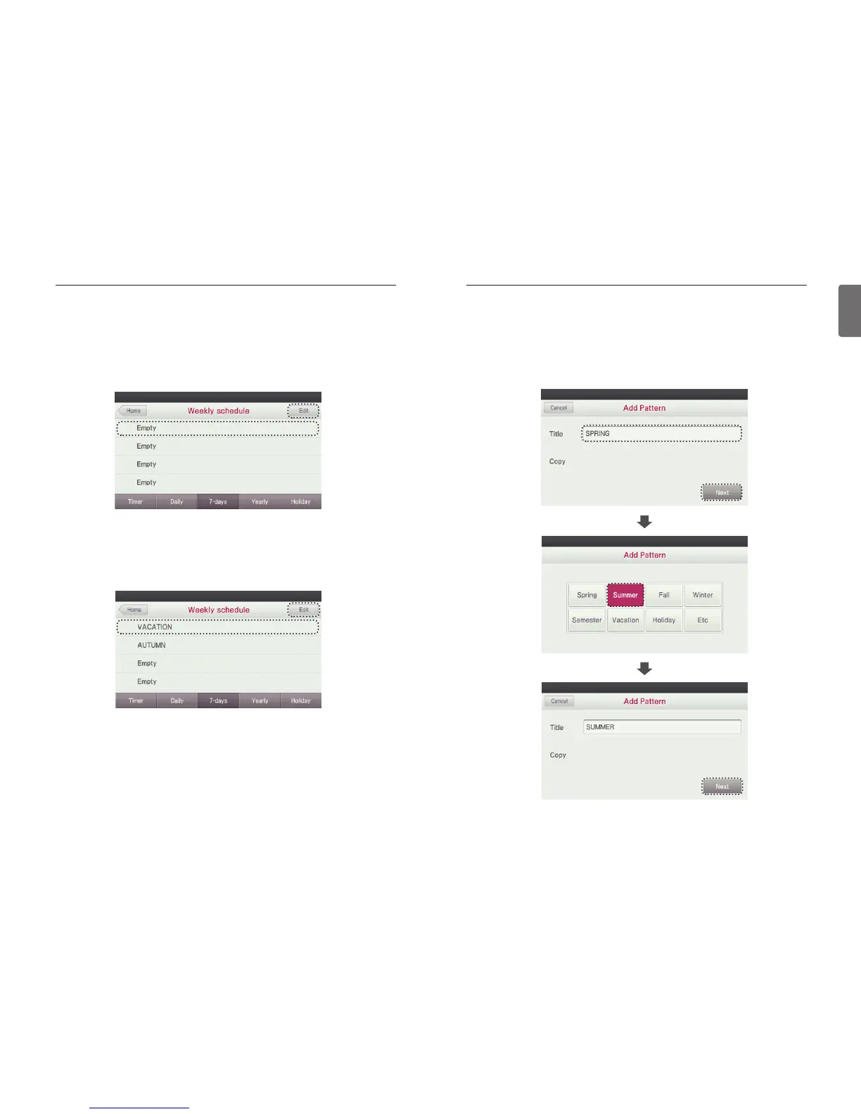 - In the 7-Days schedule screen, press ’Edit’ button, enter to edit patterns.