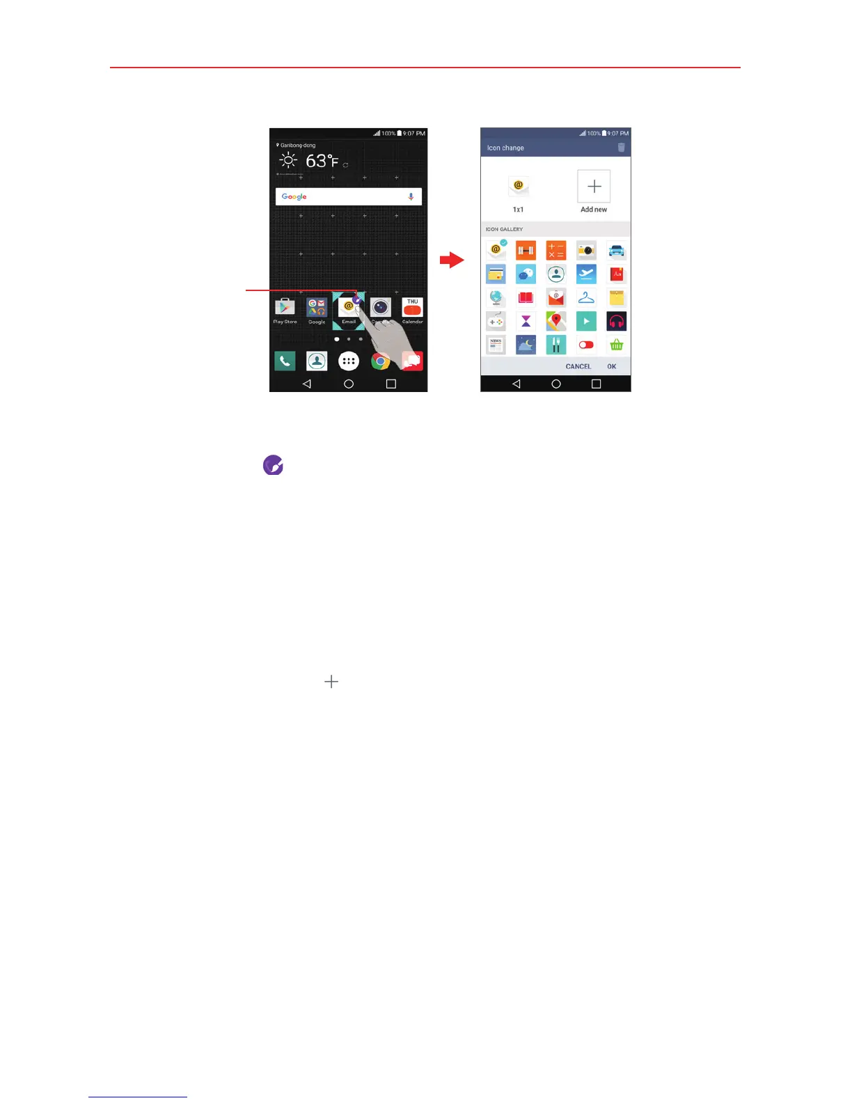 1. Touch and hold the icon you want to customize, then release the icon.