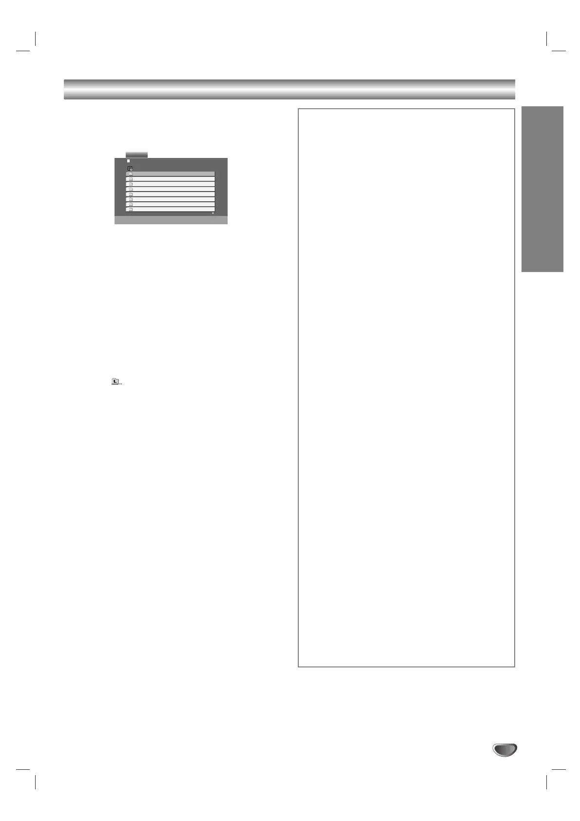 ous Folder list, use the v / V buttons on the remote to