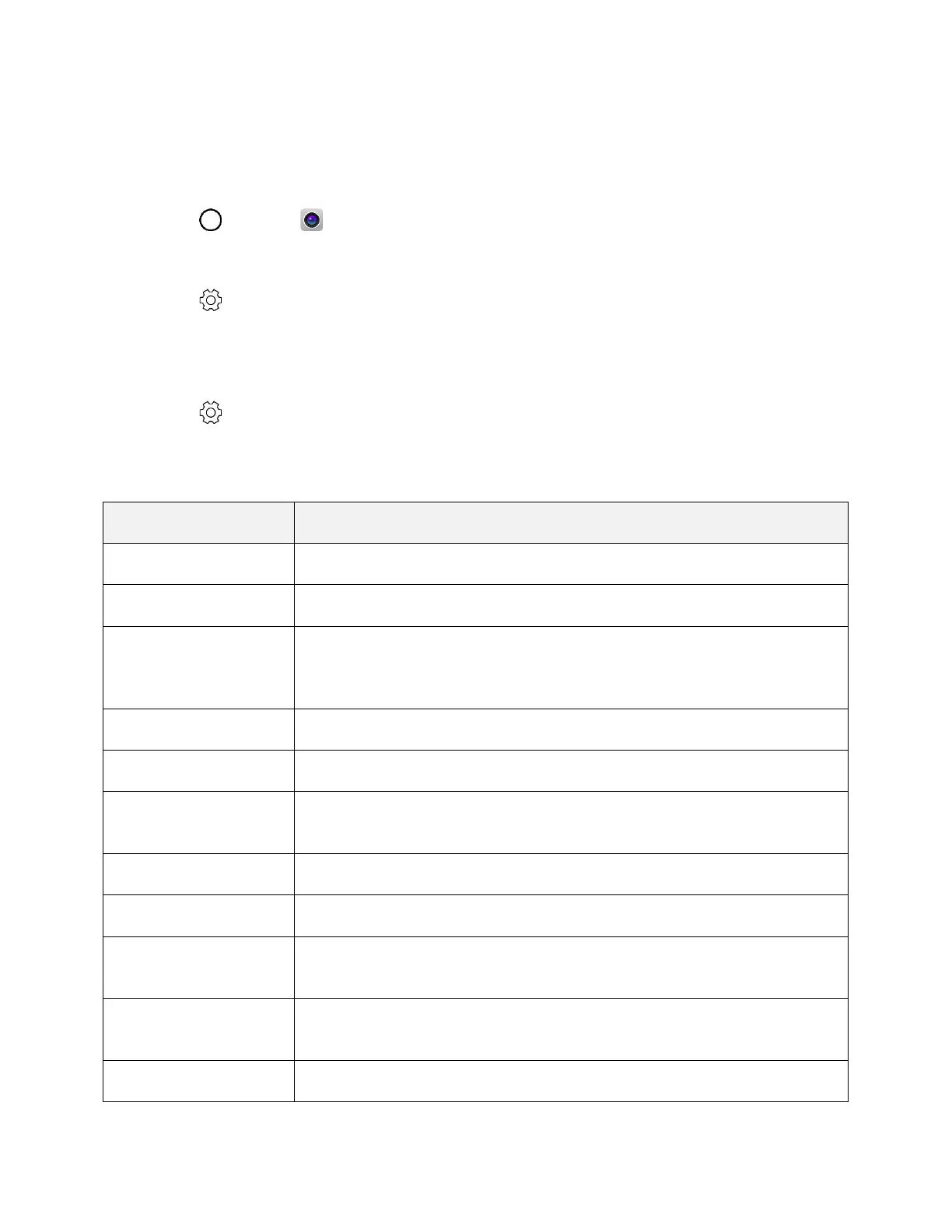 Note: Available options vary depending on the selected camera (front or rear camera) and the selected