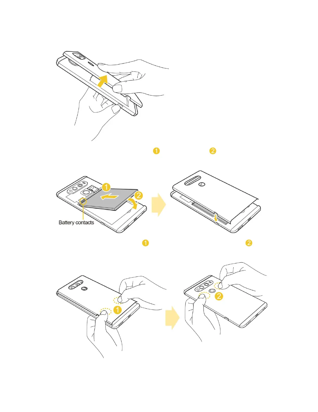 3. Align the battery with the battery contacts and insert it in place . Then to install the back