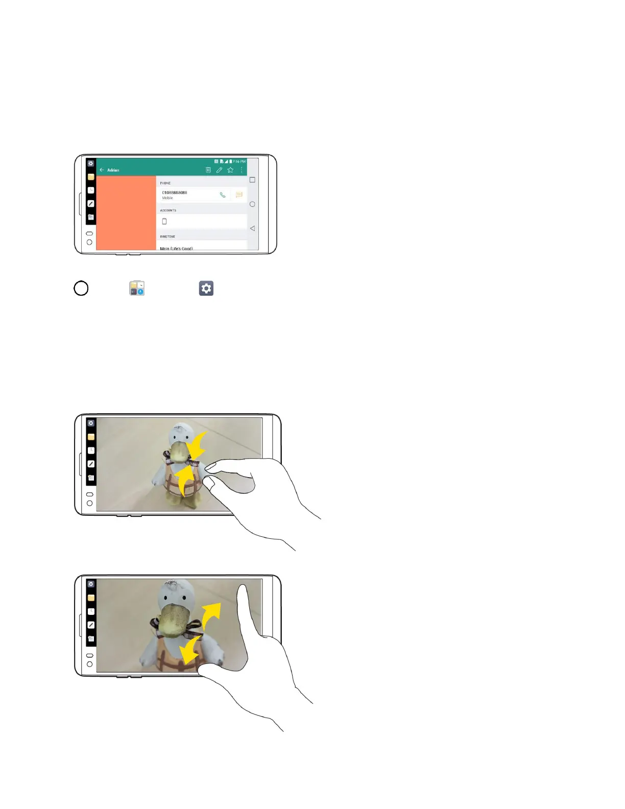 viewing a picture or a Web page. (Move fingers inward to zoom out and outward to zoom in.)