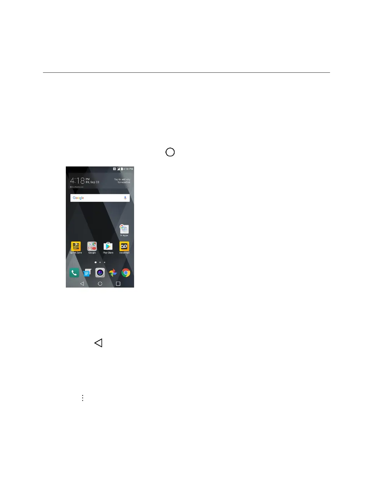 You can display options menus using the menu key, any app-specific menu icon, or by tapping and
