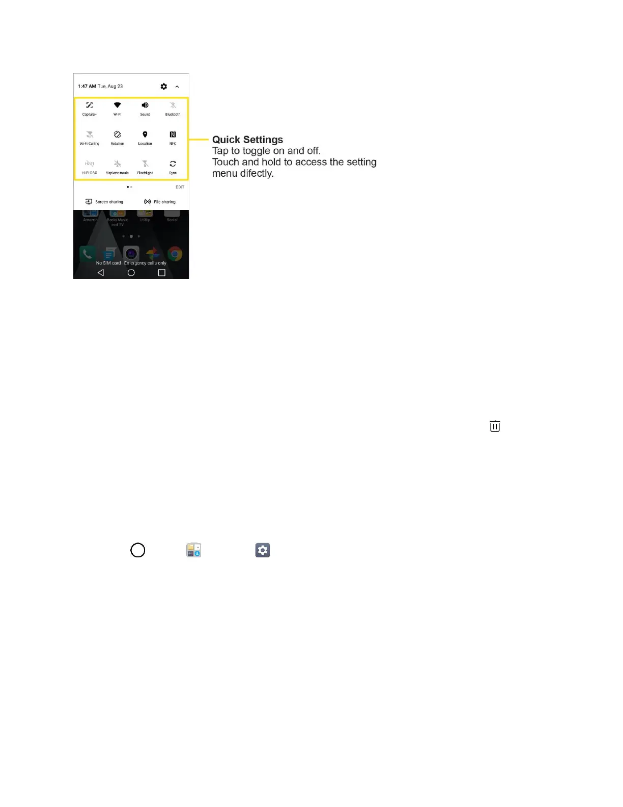 ● Moving Widgets and Icons: From home, touch and hold an item and then drag it to the desired