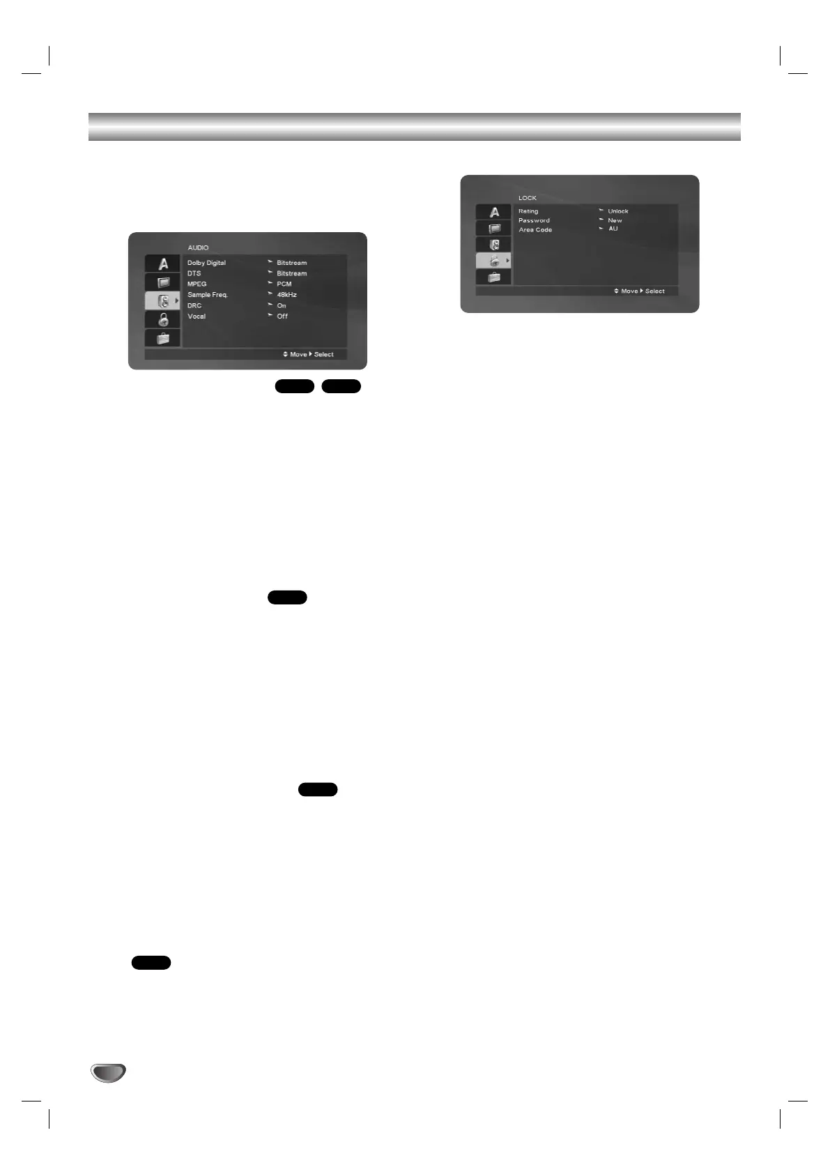 Set this unit’s AUDIO options according to the type of