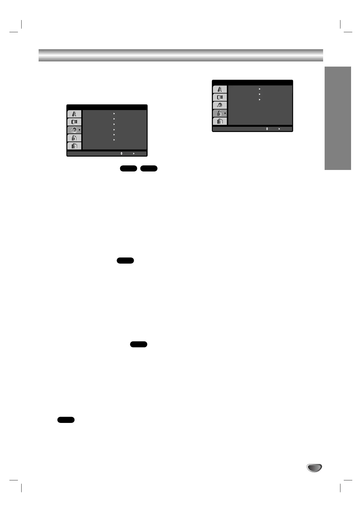 1. Select “Rating” on the LOCK menu then press B.