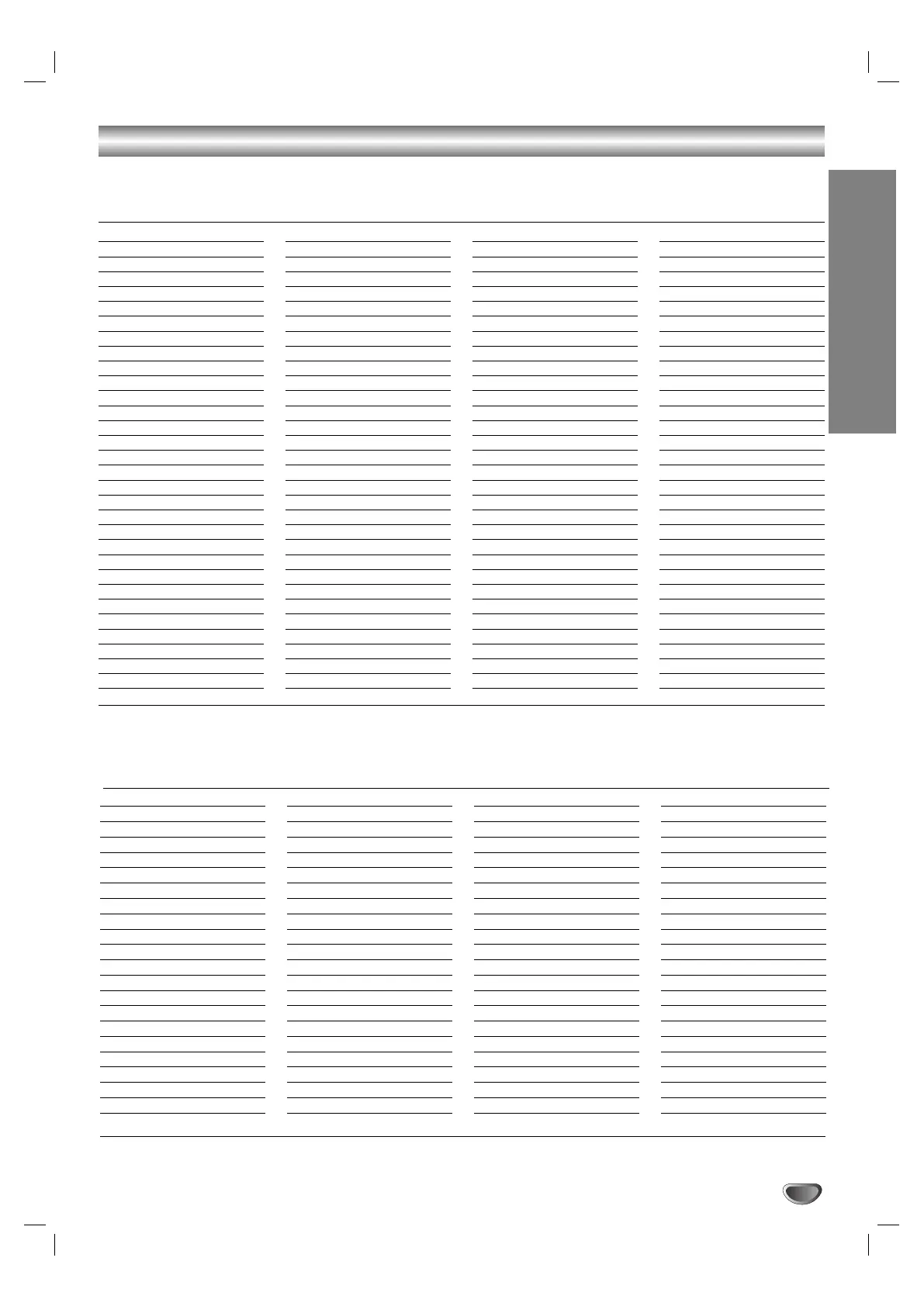 LG V280 - Language and Area Code List; Language Code List; Area Code List