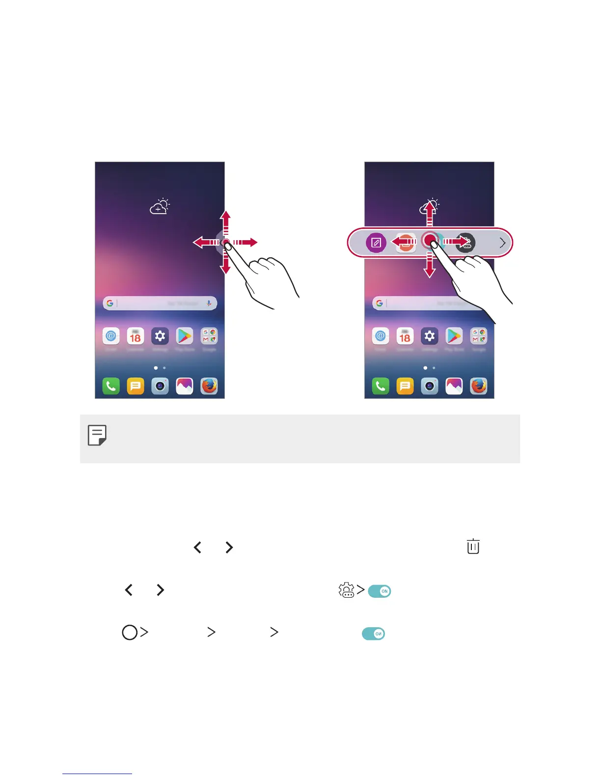 • Floating bar open: Touch and hold the floating bar, then drag it to the