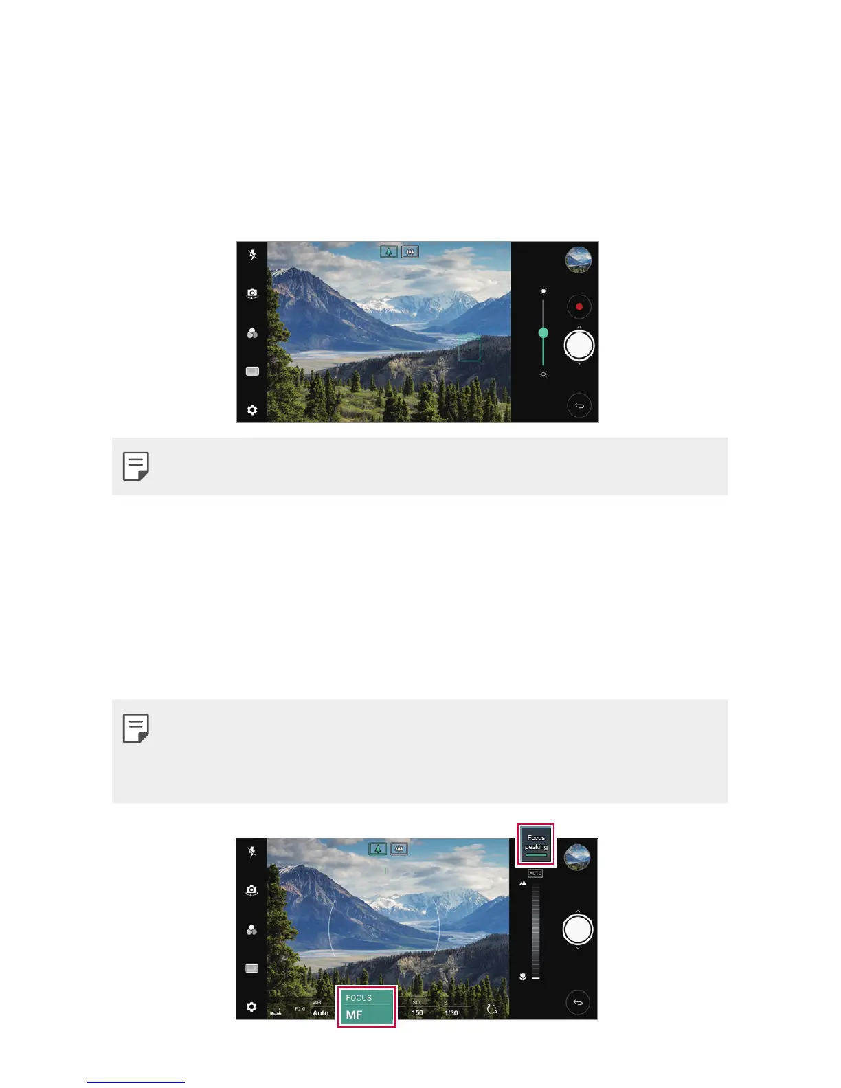 • Disable this feature by tapping the Focus peaking button once more.