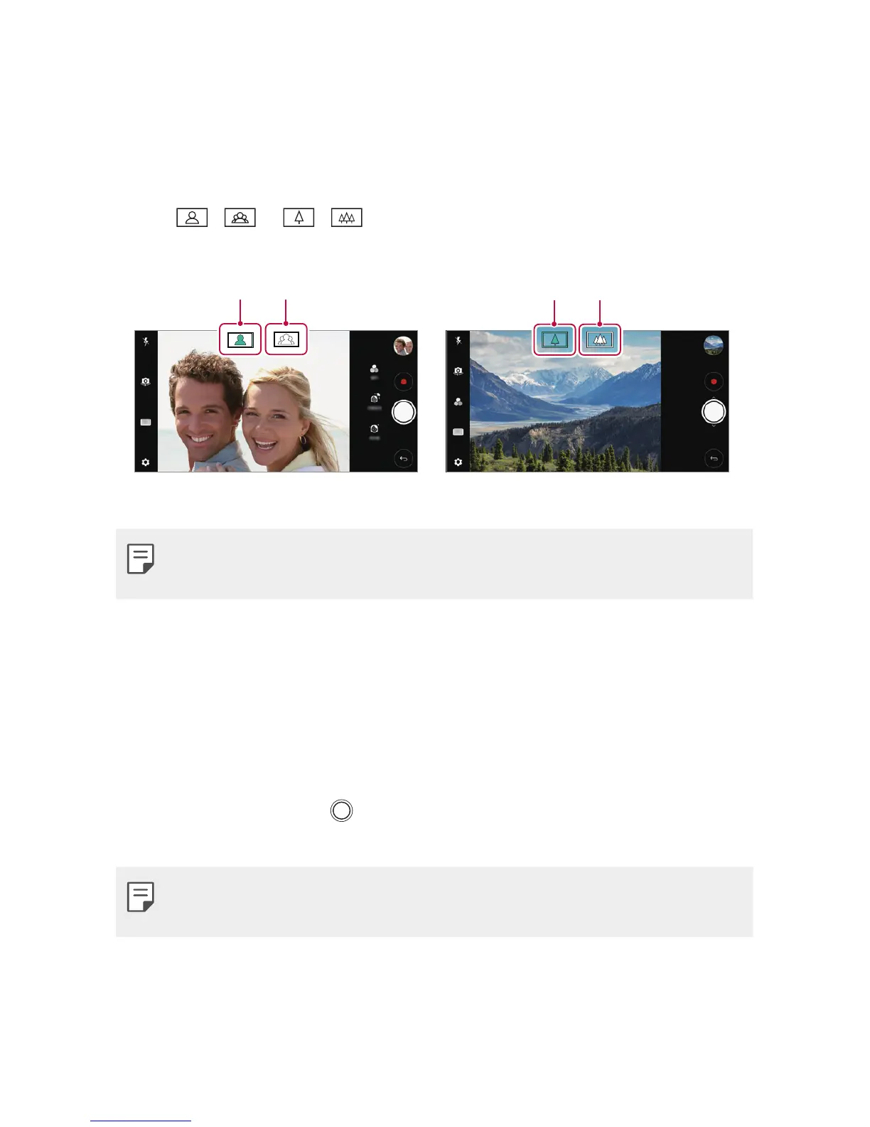 • The zoom feature is not available when using the front camera in selfie