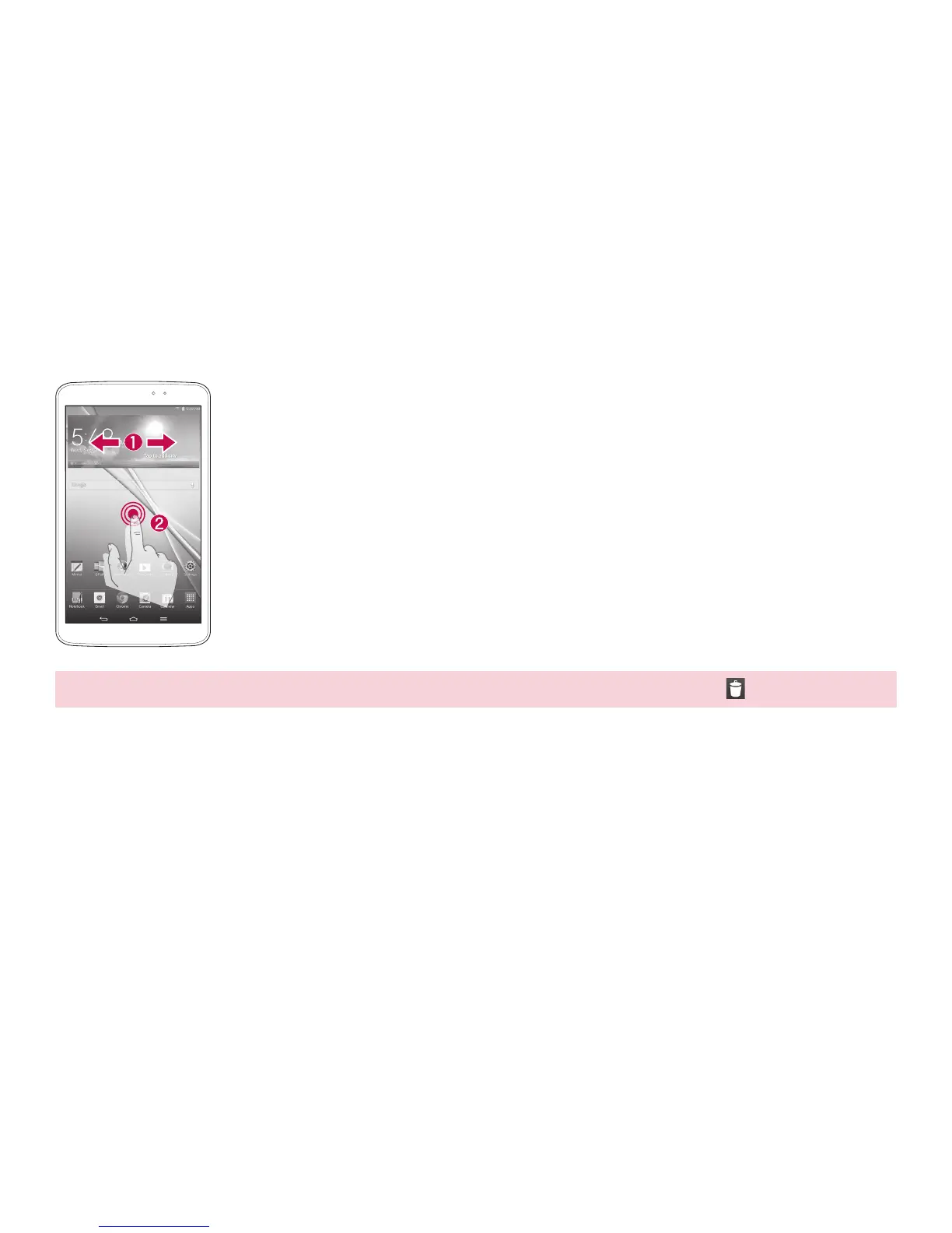 TIP! To delete an icon from the Home screen, touch and hold it, then drag it to the icon.