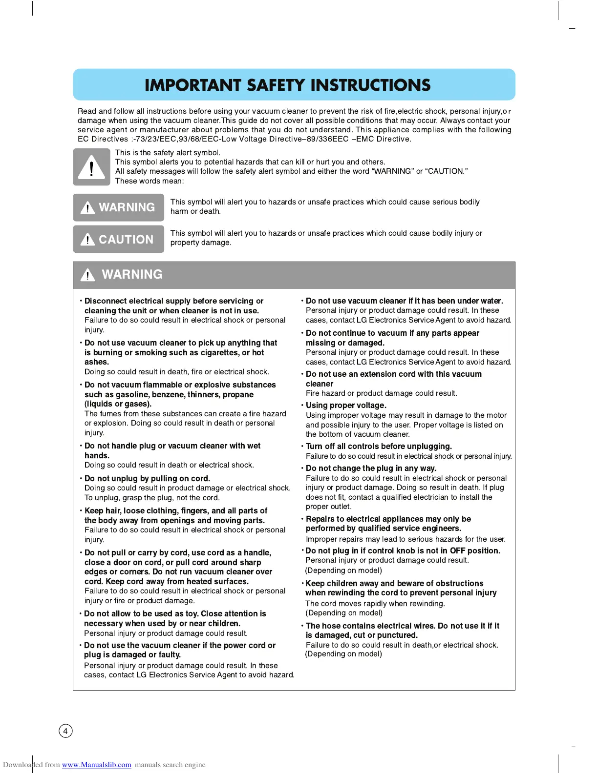Read and follow all instructions before using your vacuum cleaner to prevent the risk of fire,electric shock, personal injury,o
