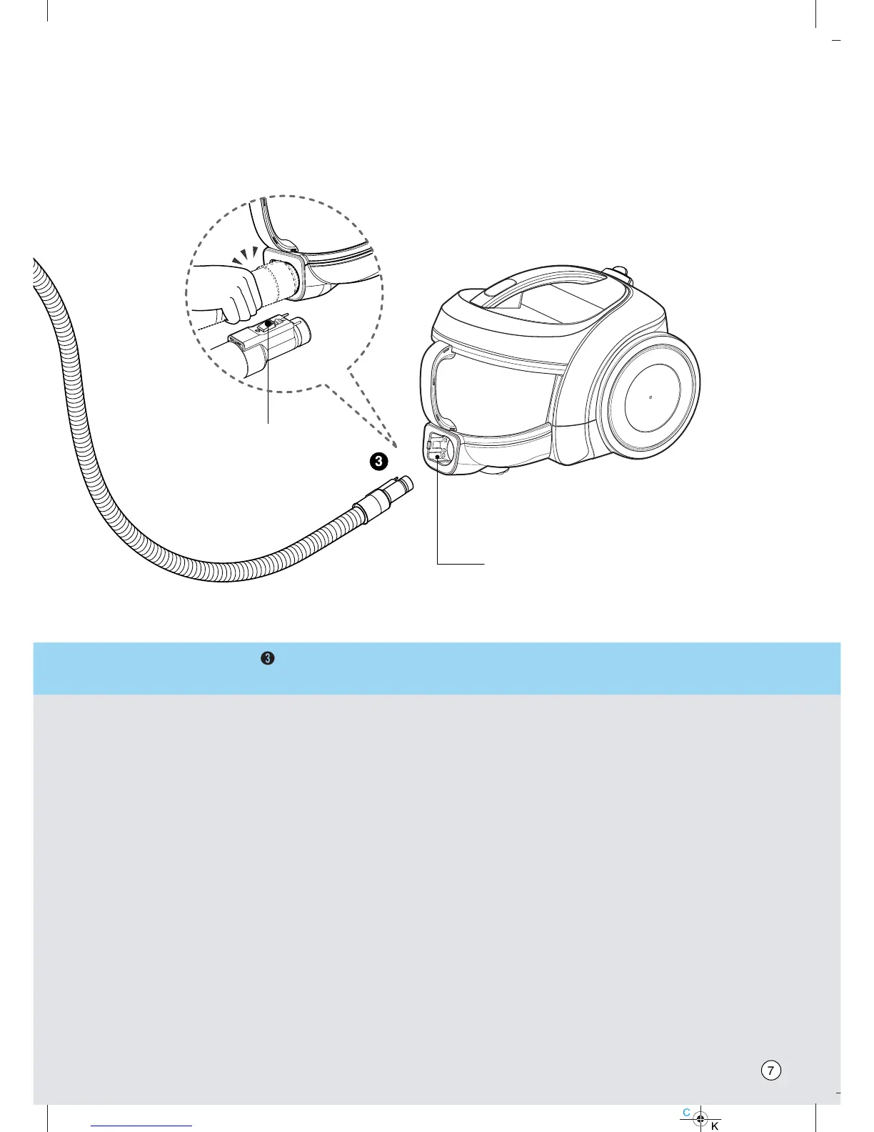 Push the fitting pipe on the flexible hose into the attachment point on the vacuum cleaner.