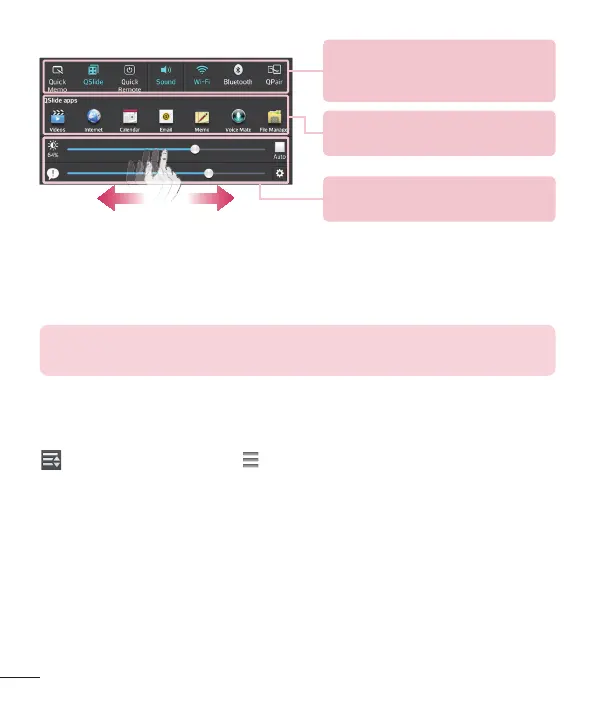 QSlide apps are displayed in a bar on the Notifications Panel below the