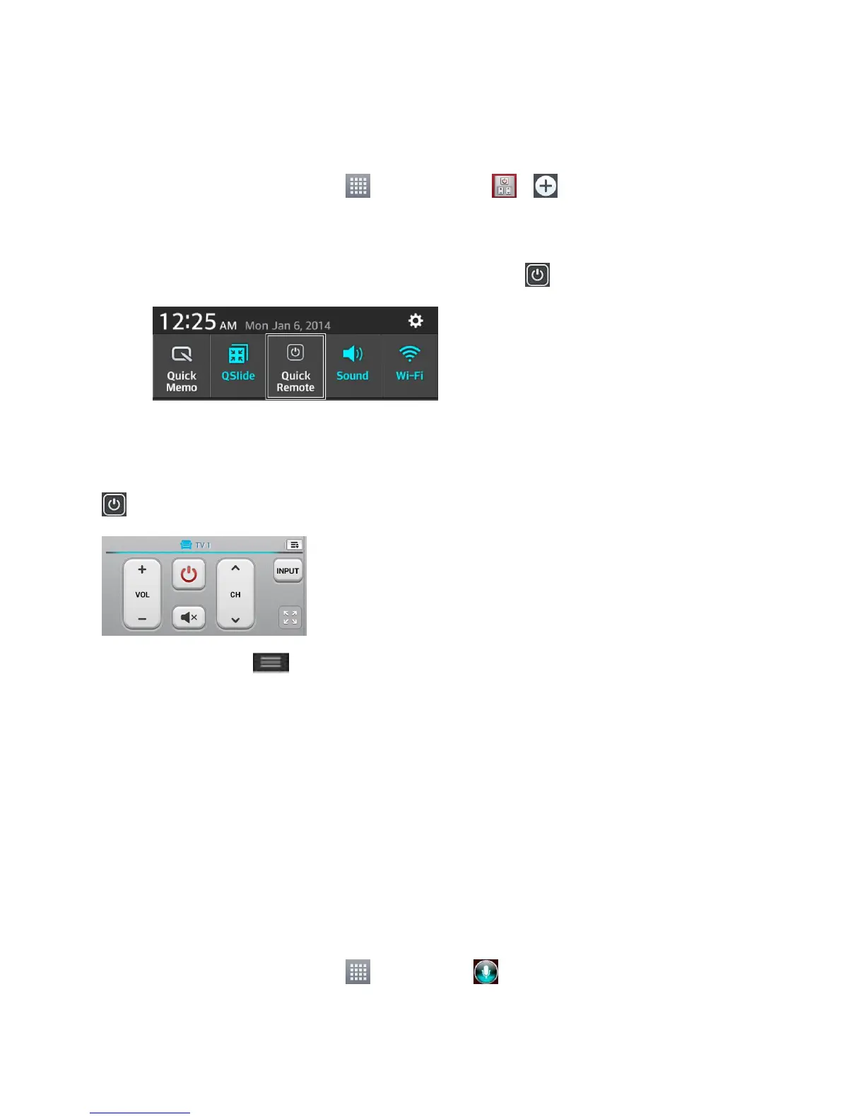 Tip: To quickly use the QuickRemote feature, touch and slide the Status Bar downward and tap