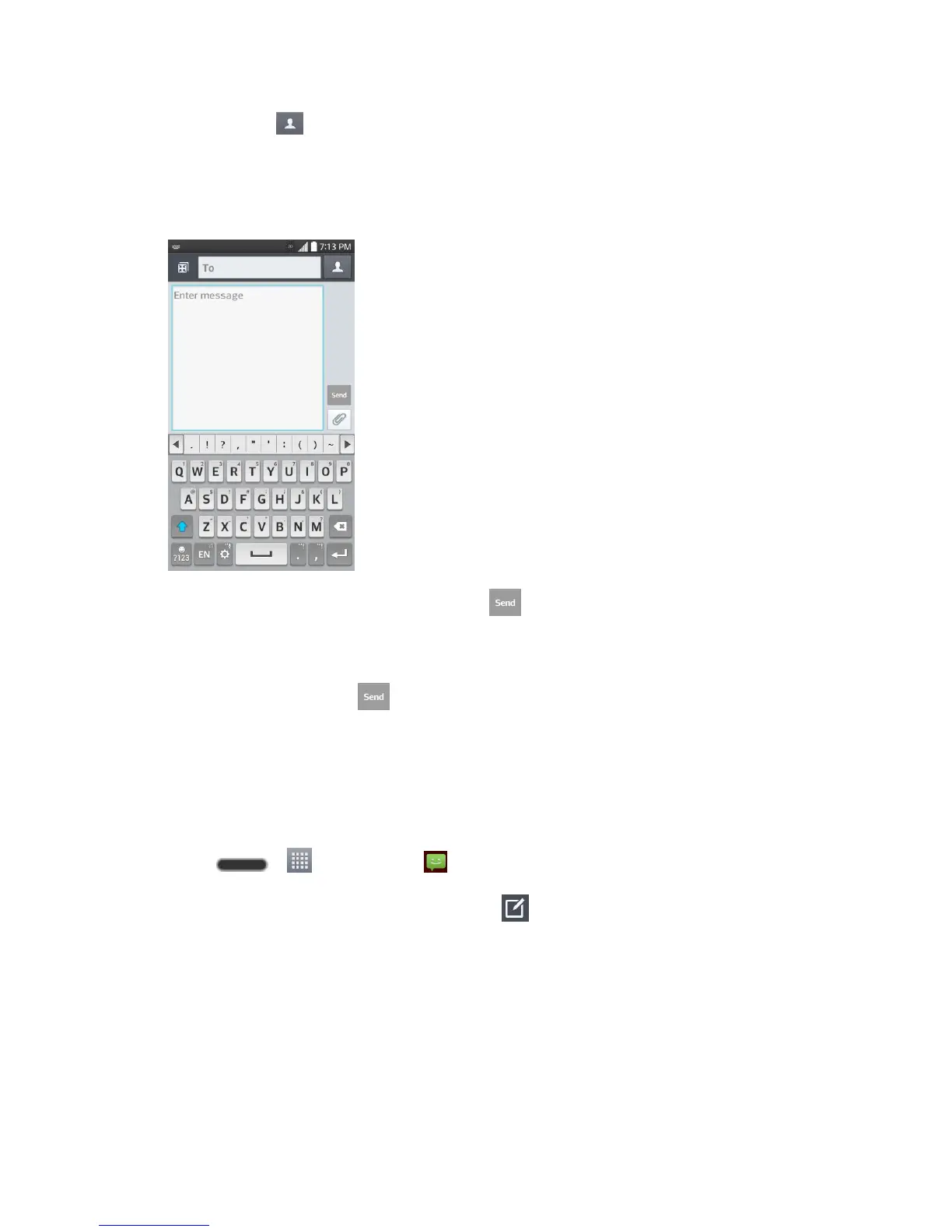 4. Touch the ―Enter message‖ box and then start composing your message.