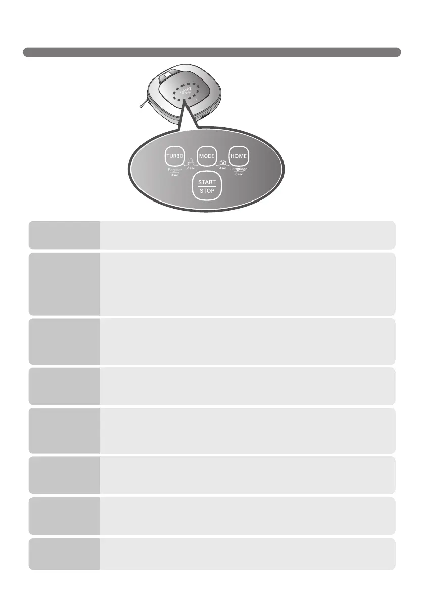 BUTTON FUNCTIONS – ROBOT CLEANER