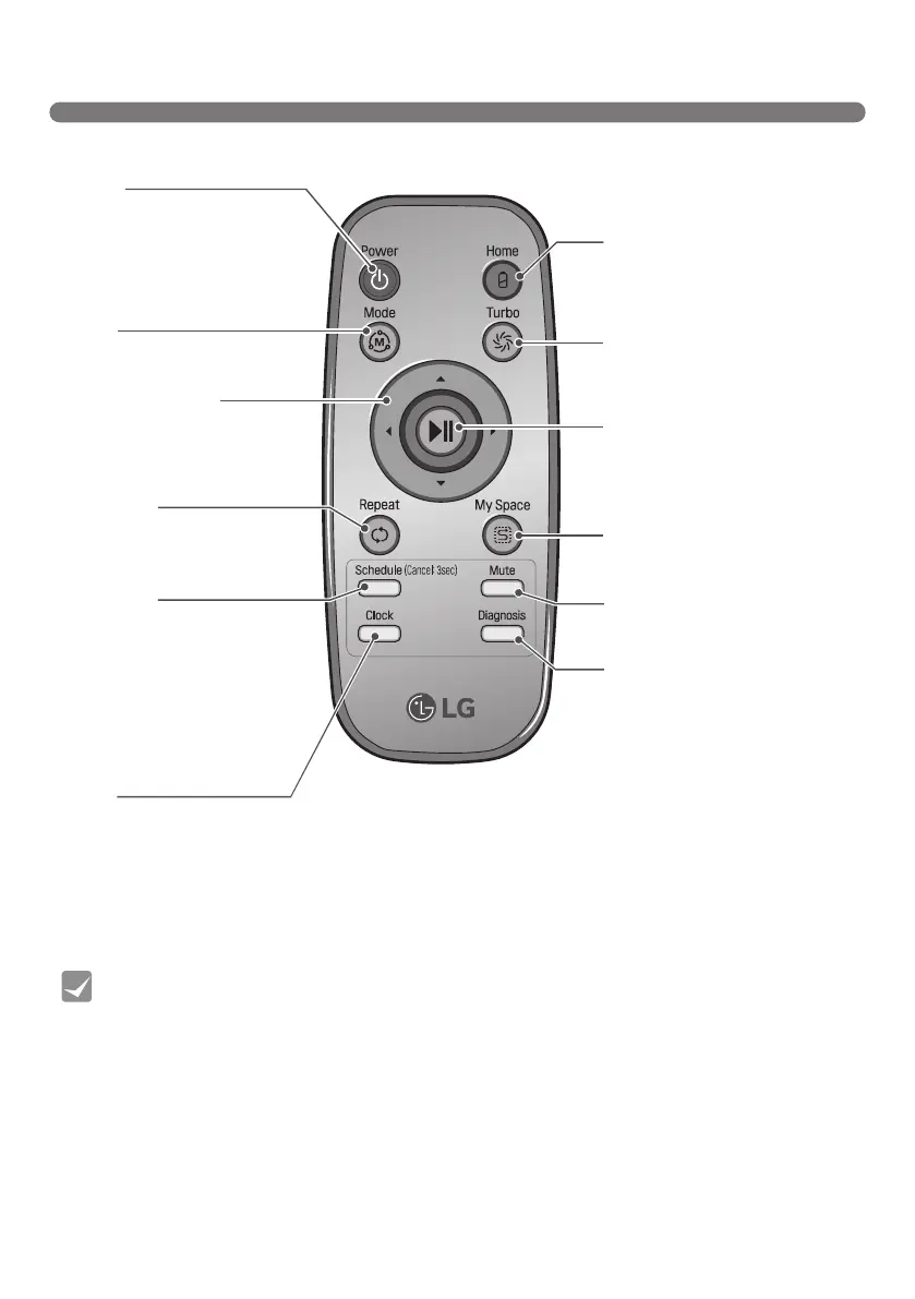 • The 'Mode', 'My Space' or 'Clock' button can only be used after stopping the Robot Cleaner or