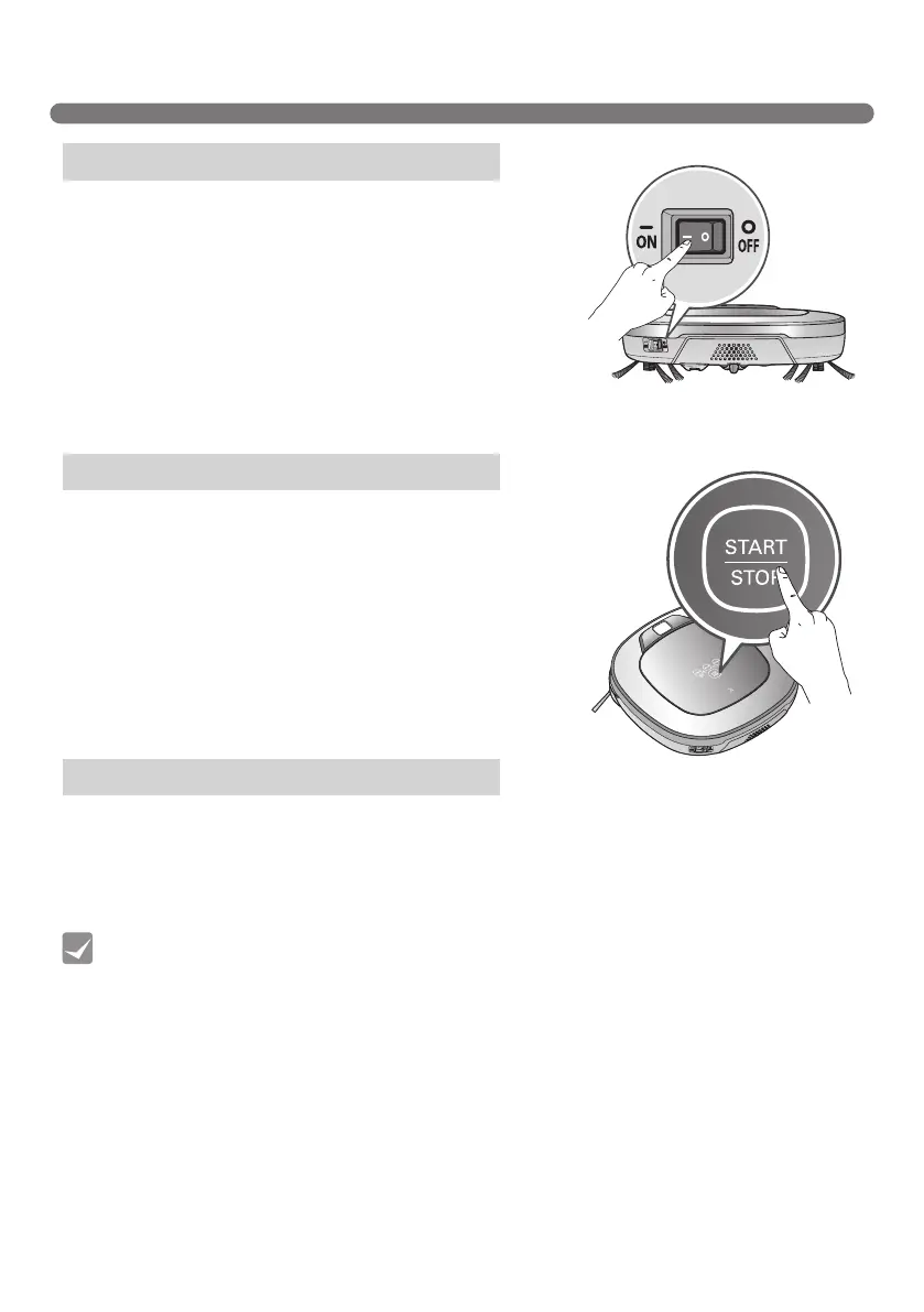 With the Standby power of the Robot Cleaner OFF, press 'START/