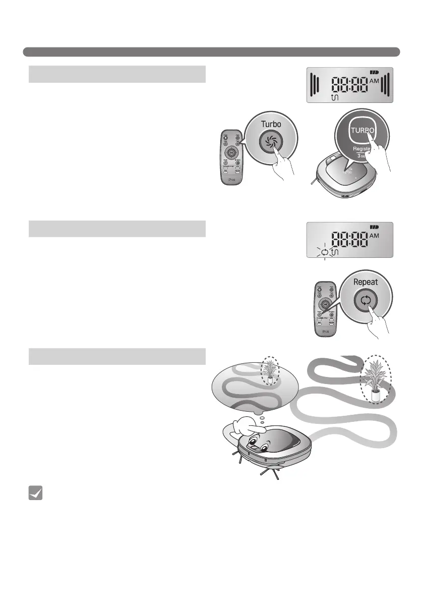 In 'Repeat' mode, Robot Cleaner repeats the cleaning in progress.