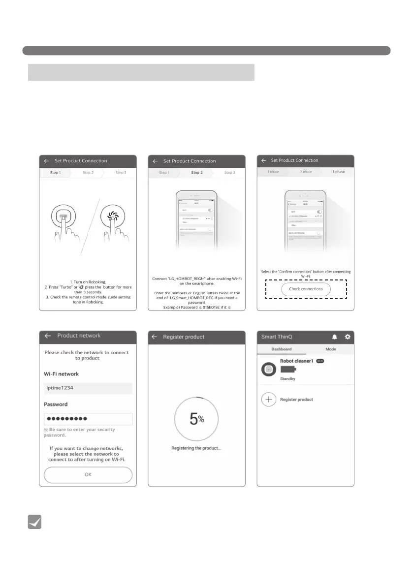 3. Please press the “Check connection” button on the App screen after connecting to “LG_HOMBOT_REG~”