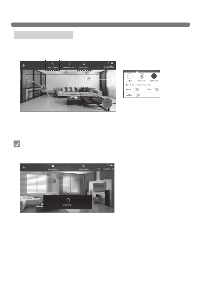 clicking the “Mode setting” button before pressing the “Start cleaning” button.