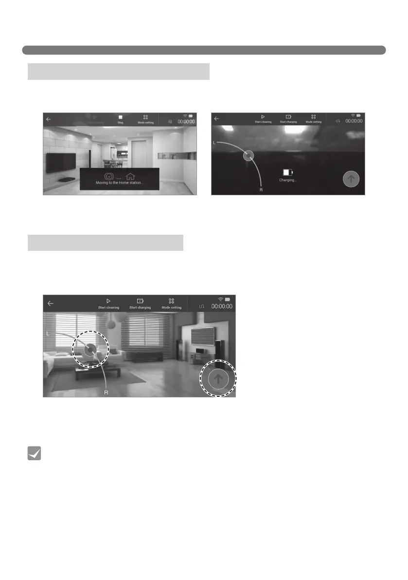 Move the Robot Cleaner with the rotation button on the lower left corner and the forward button on the lower