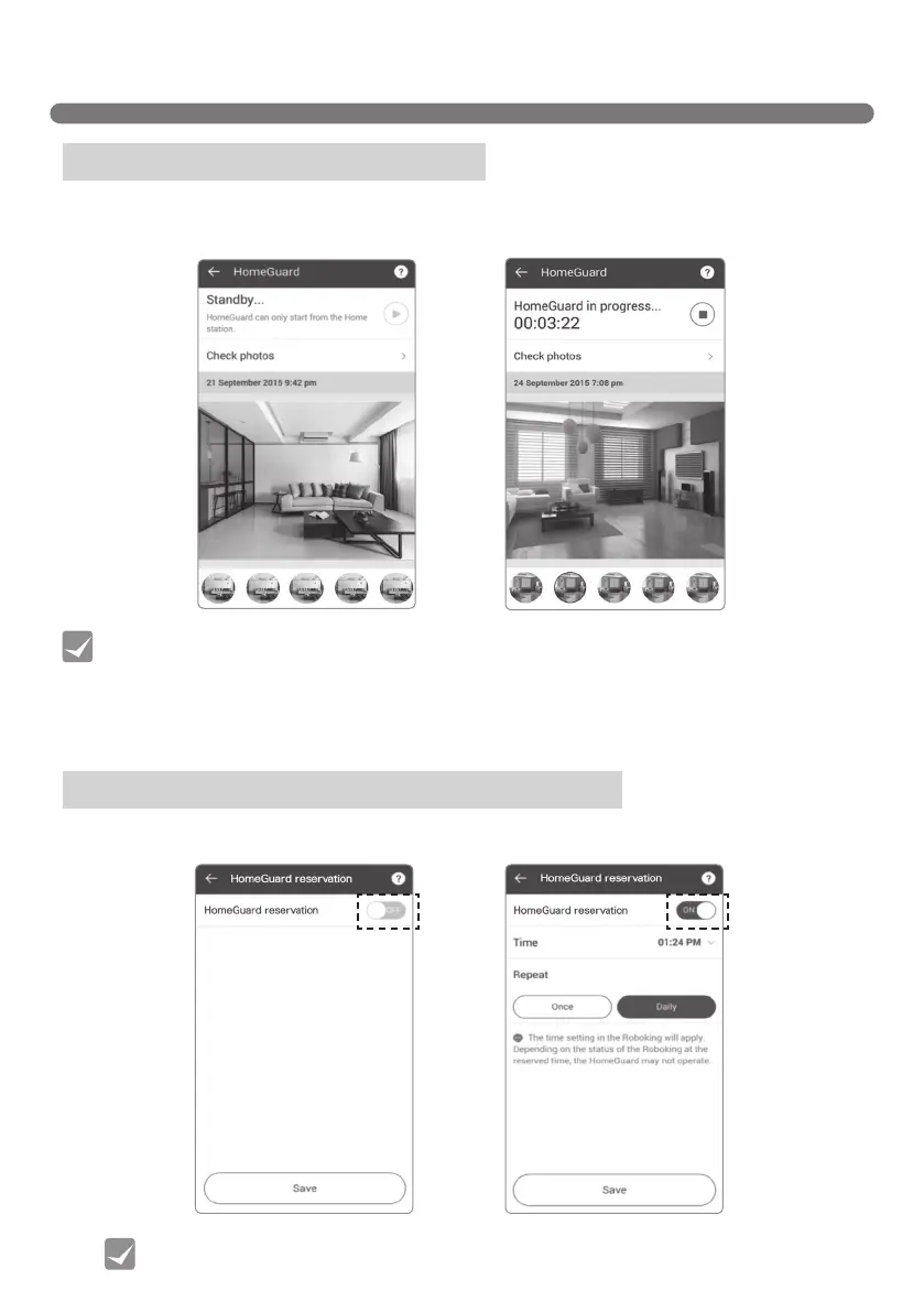 • Scheduling or activating HomeGuard is only available when the Robot Cleaner is charging.