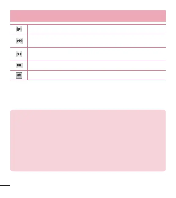 previous song. Touch and hold to rewind in 3 second increments.