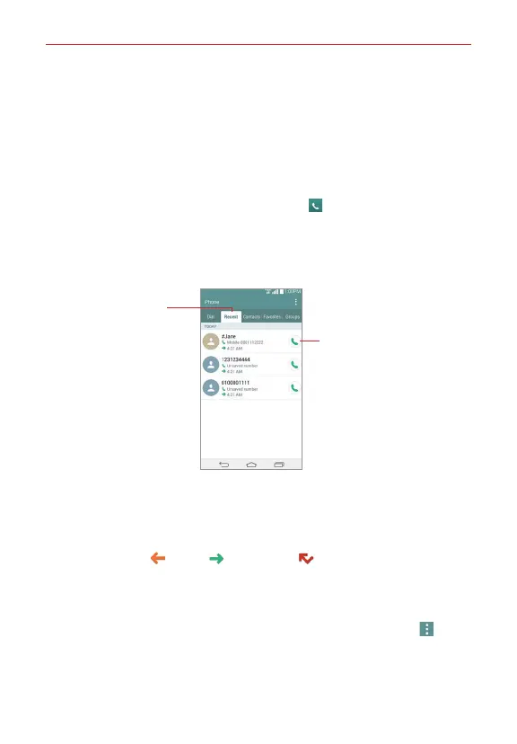 The Recent tab records all of the calls you’ve dialed, received, or missed. It