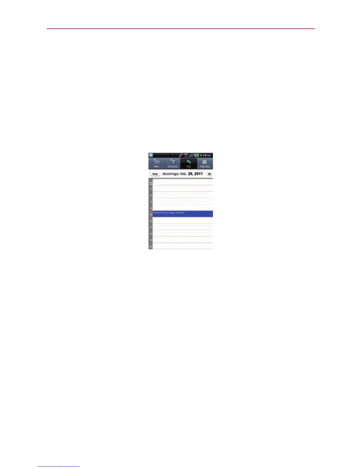 hora. La hora actual estará destacada. Los eventos de todo el día y de varios