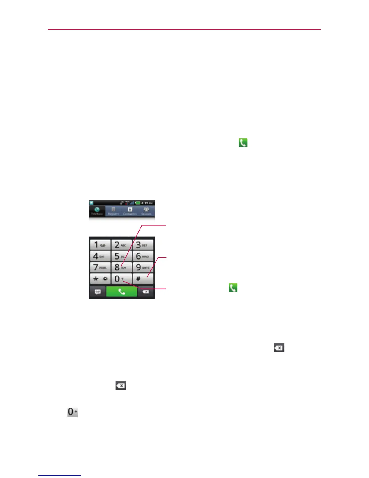 Para marcar un número internacional, toque y mantenga presionado