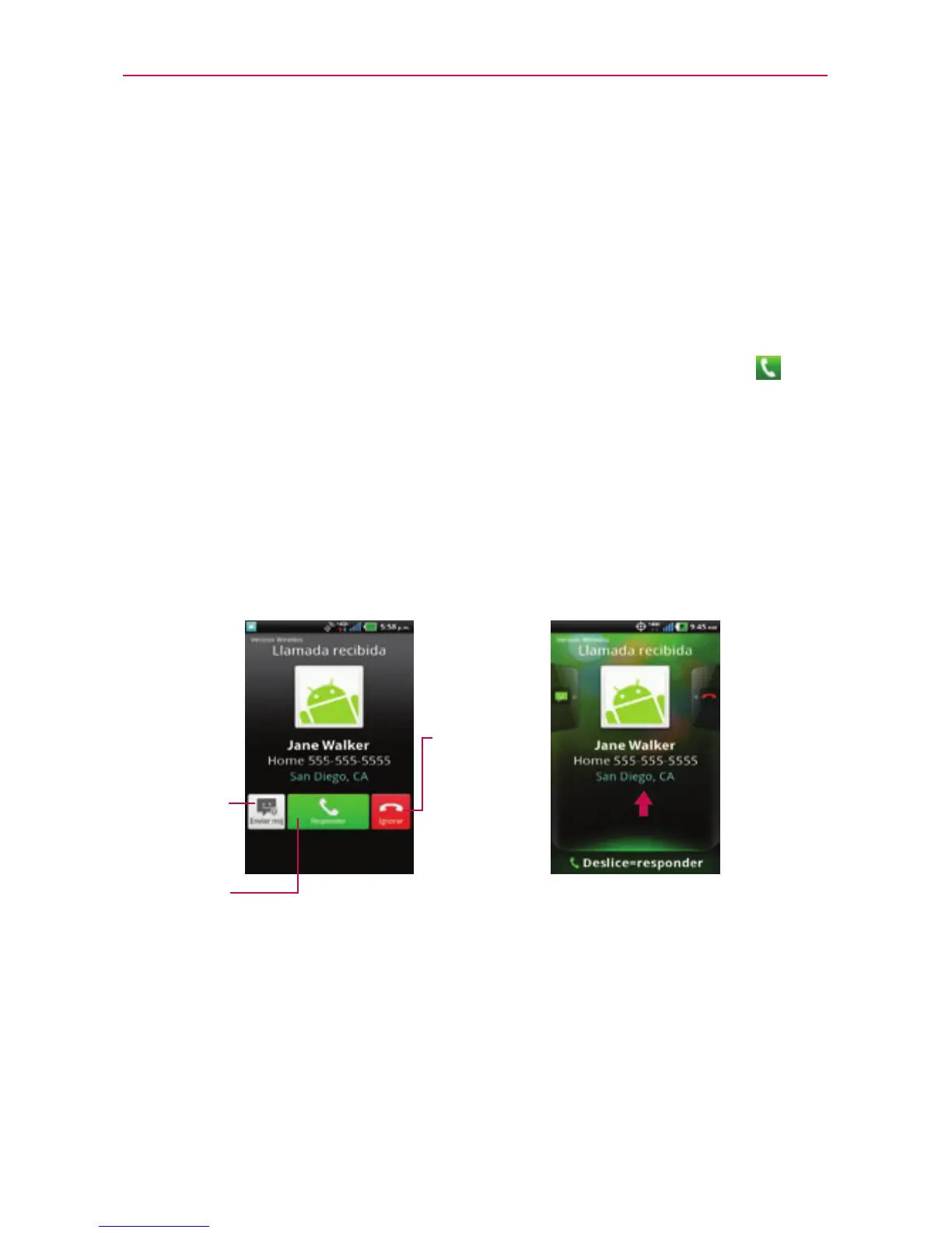 Si la pantalla es bloqueada, deslice la pantalla hacia arriba para responder.