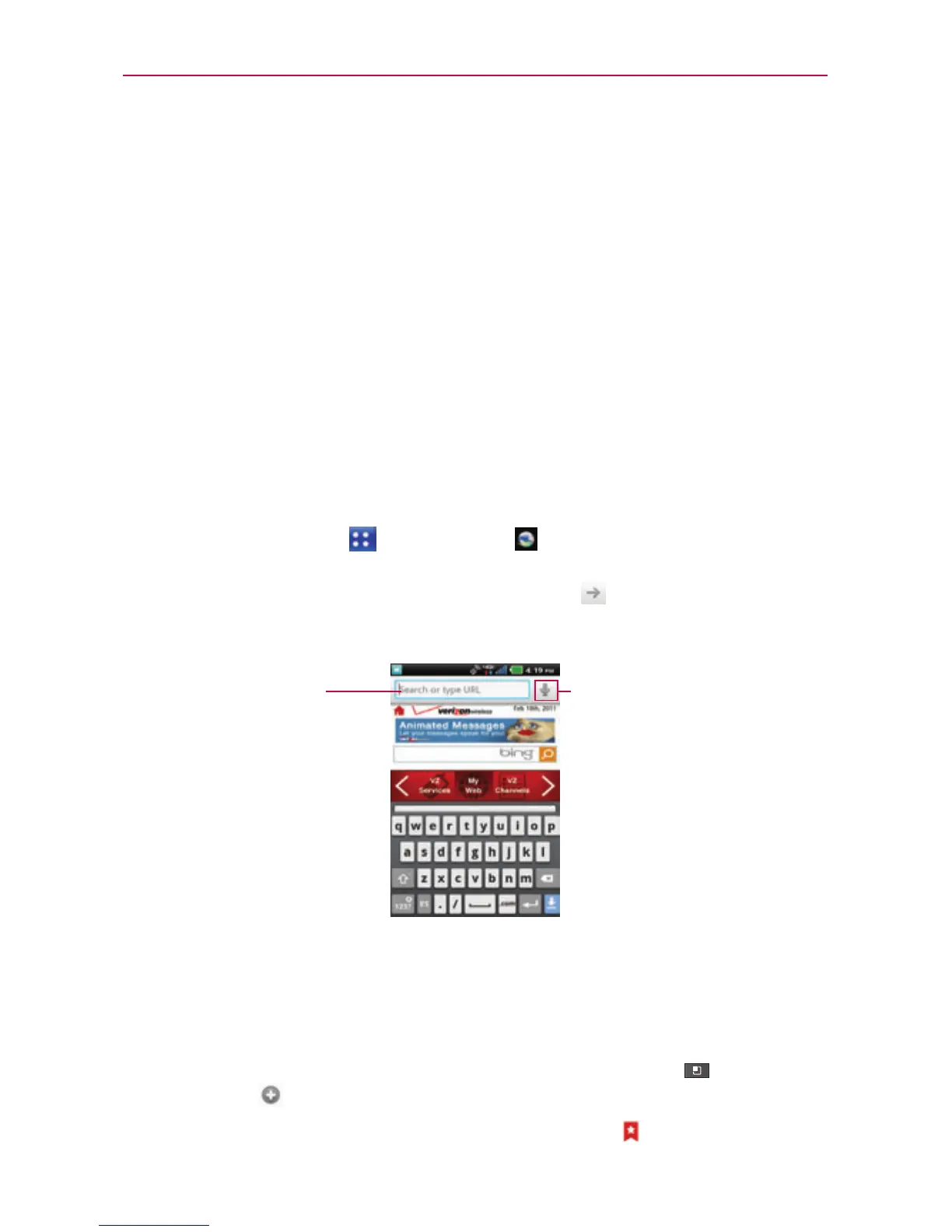 Para ver la lista de marcadores, toque Marcadores junto al campo URL.