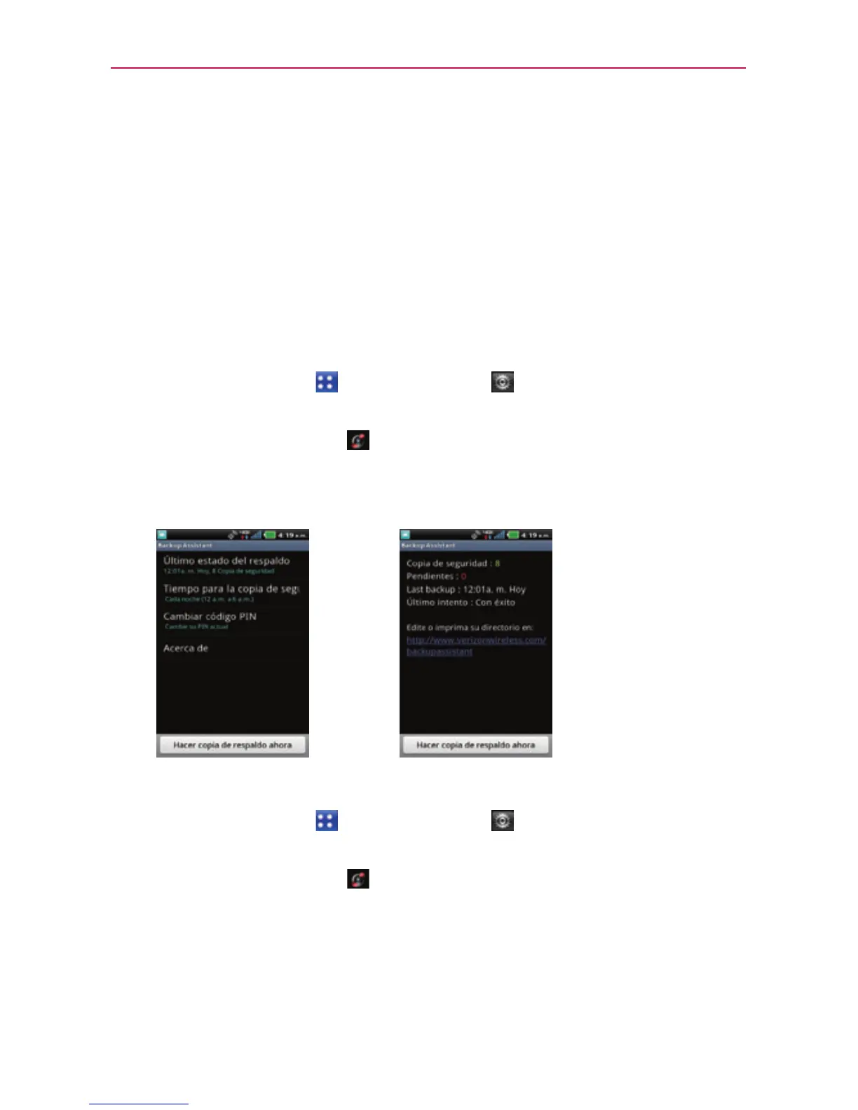 3. Toque Hacer copia de respaldo en la pantalla de configuración o de