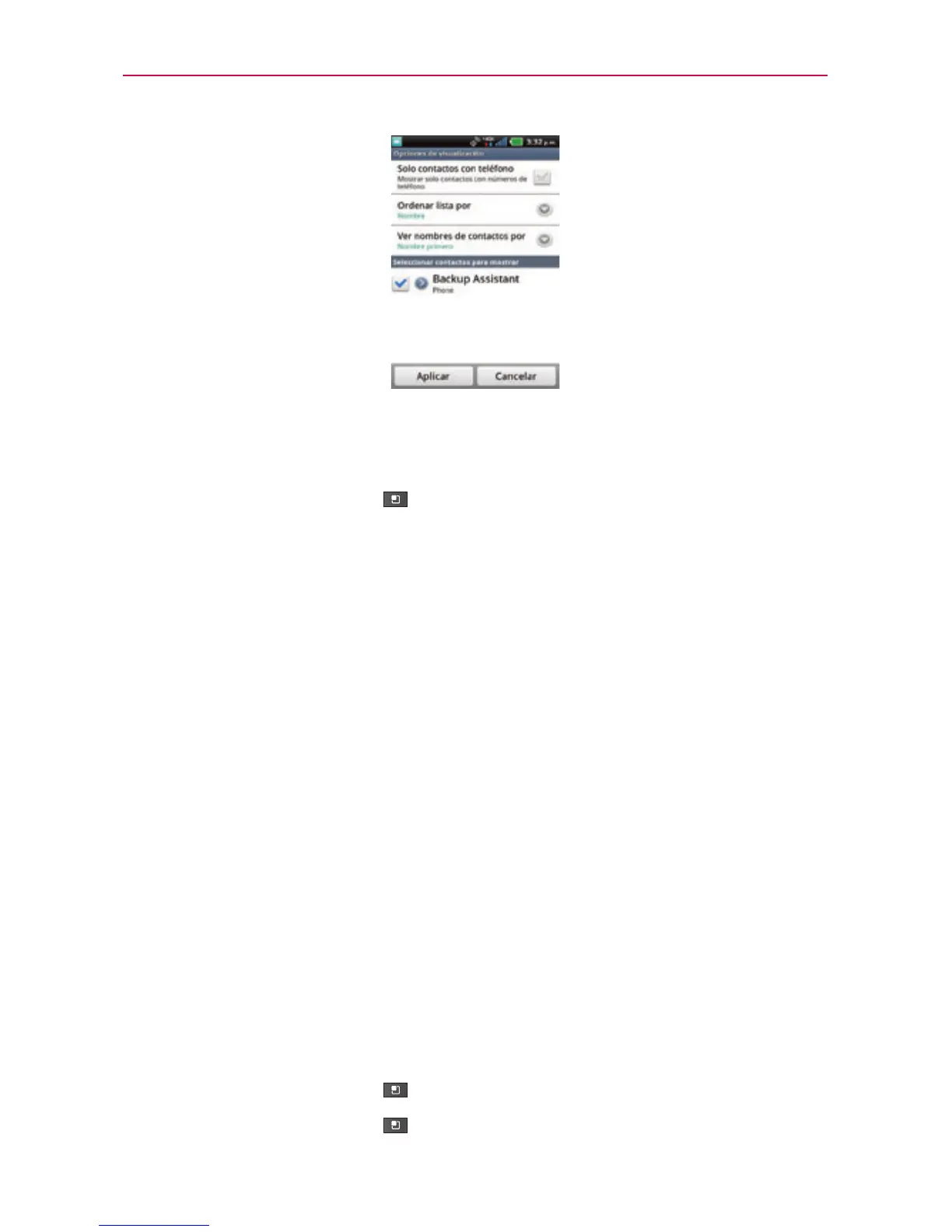 contactos. Esta acción afecta únicamente cuáles contactos se muestran.