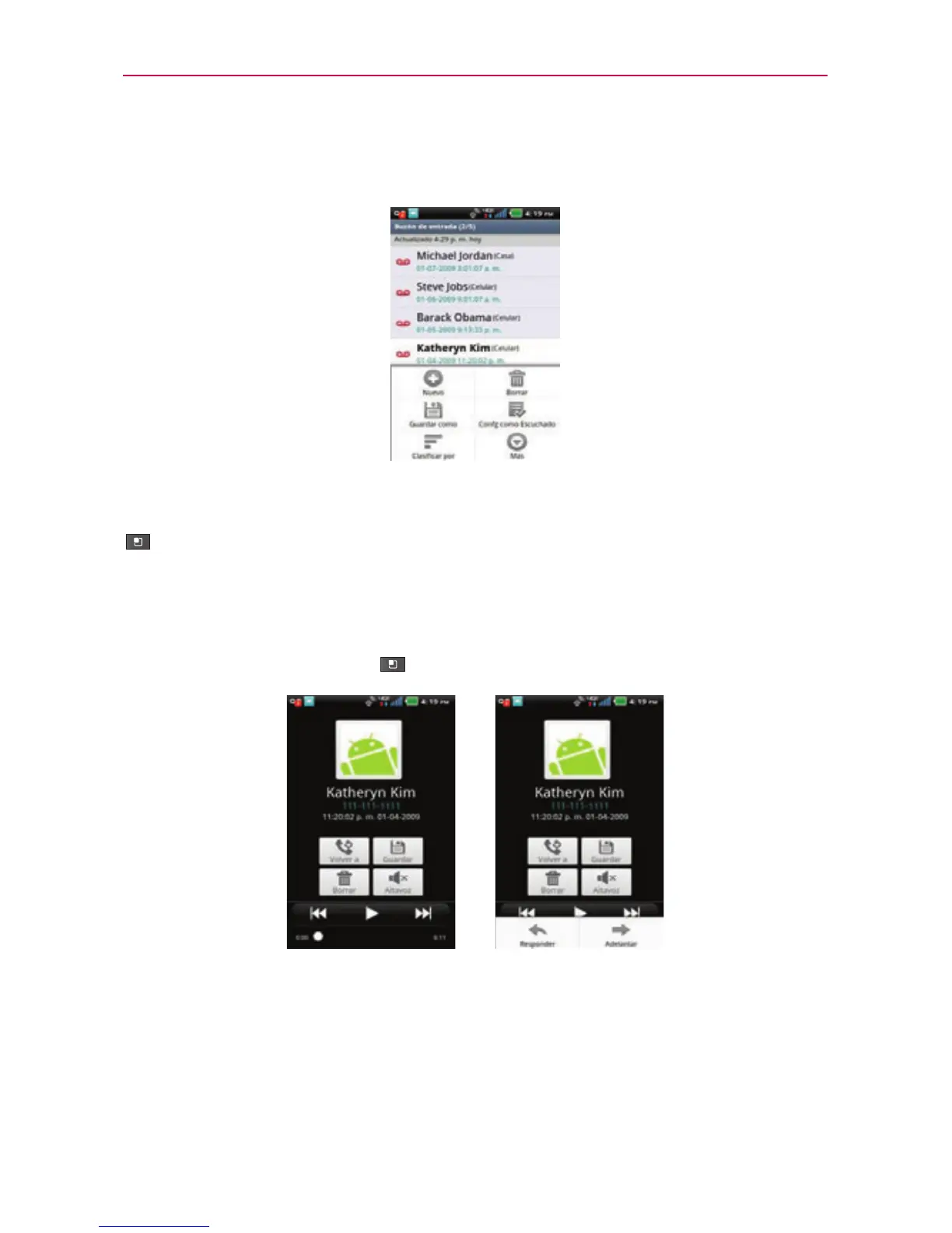 5. Toque una entrada de correo de voz para escucharla. Puede tocar Volver