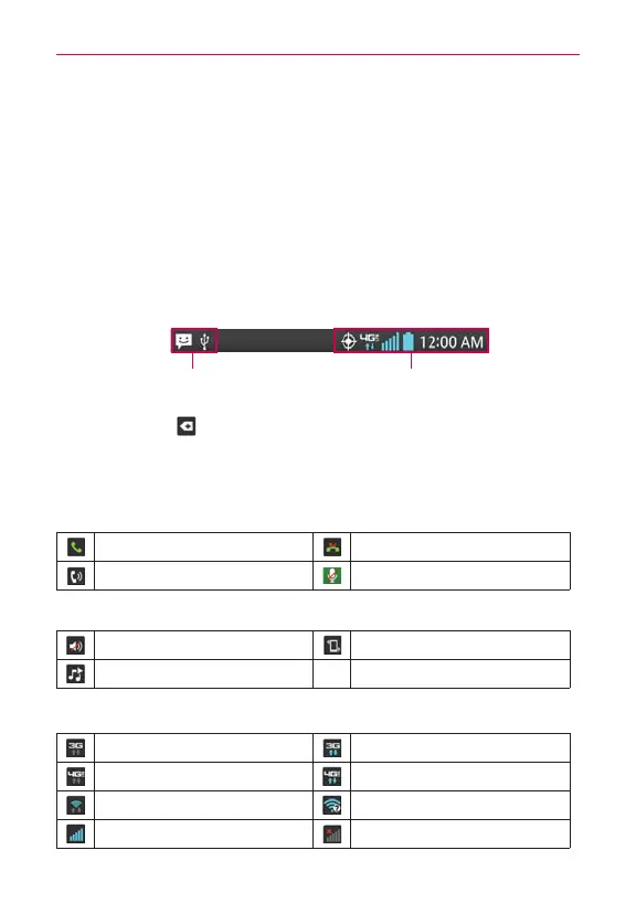 Notification icons Status icons