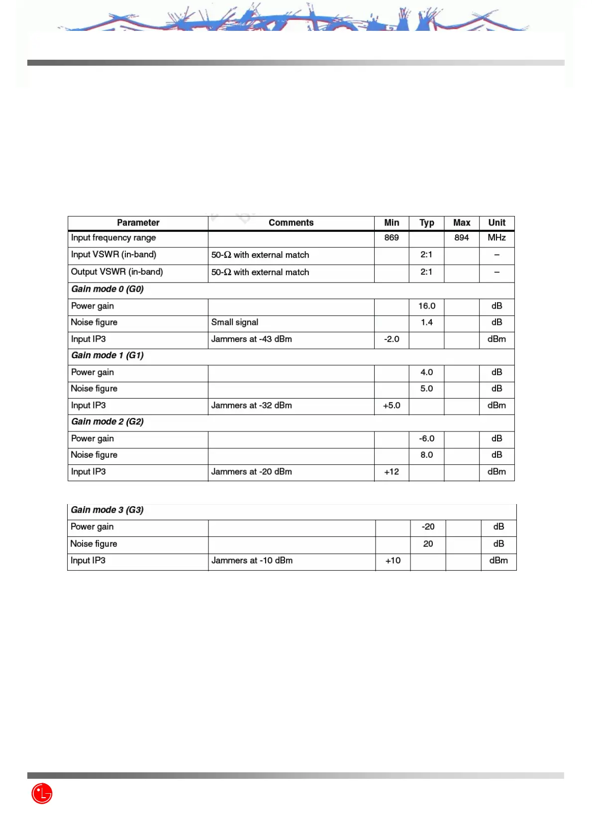 The specification of LG-VX8560 LNAs are described below: