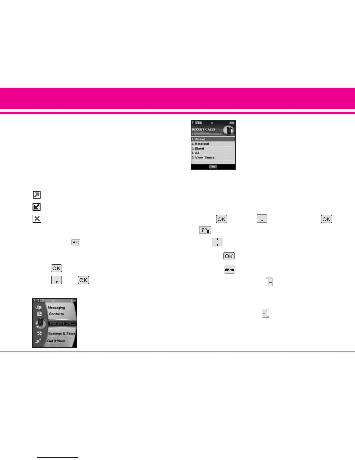 1. Press [MENU], [RECENT CALLS], ,