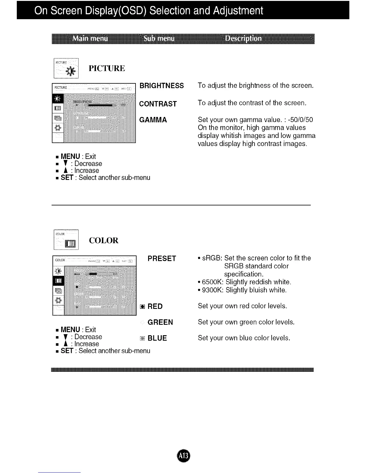 • SET : Select another sub-menu