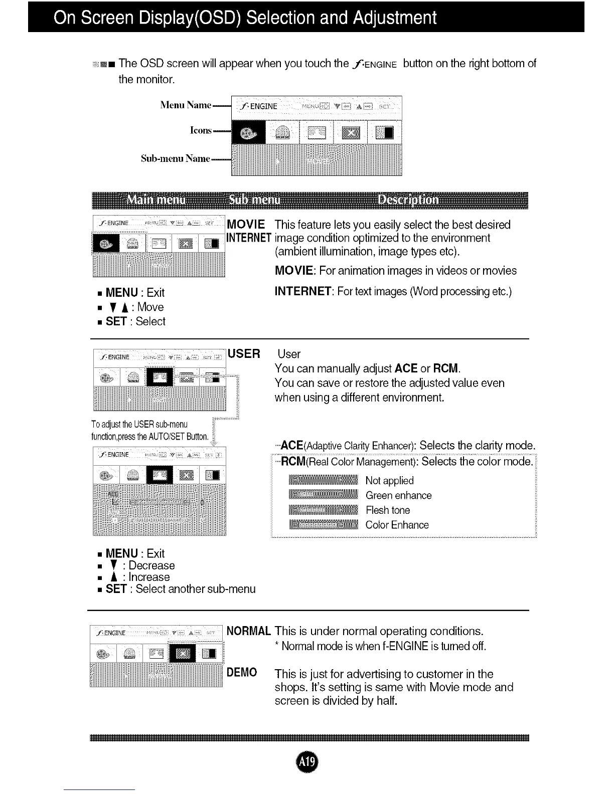 •..ACE(AdaptiveClarityEnhancer):Selects the clarity mode.