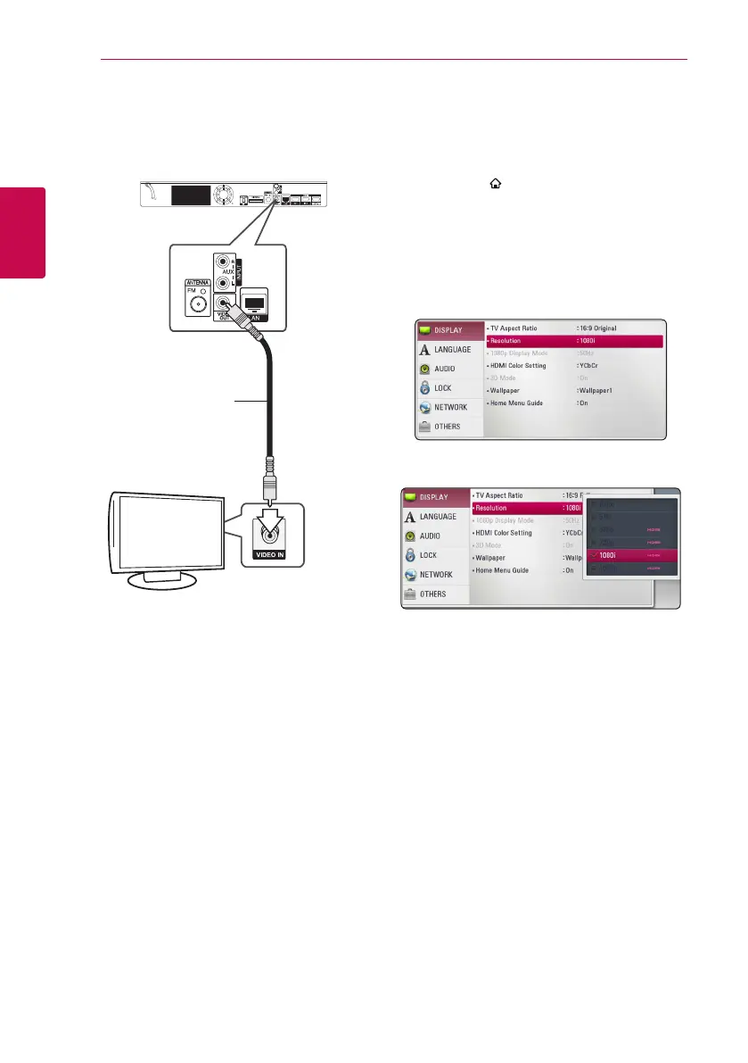 Connect the VIDEO OUT jack on the player to the
