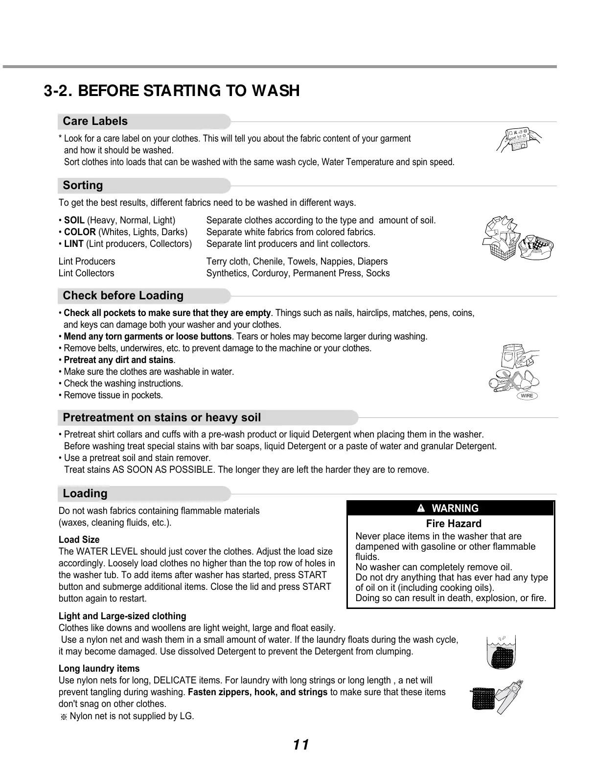 3-2. BEFORE STARTING TO WASH