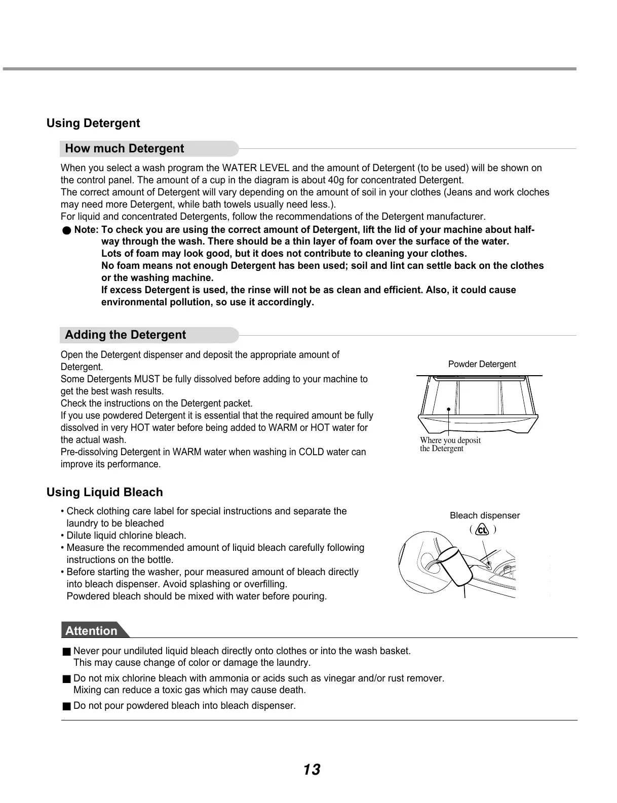 For liquid and concentrated Detergents, follow the recommendations of the Detergent manufacturer.