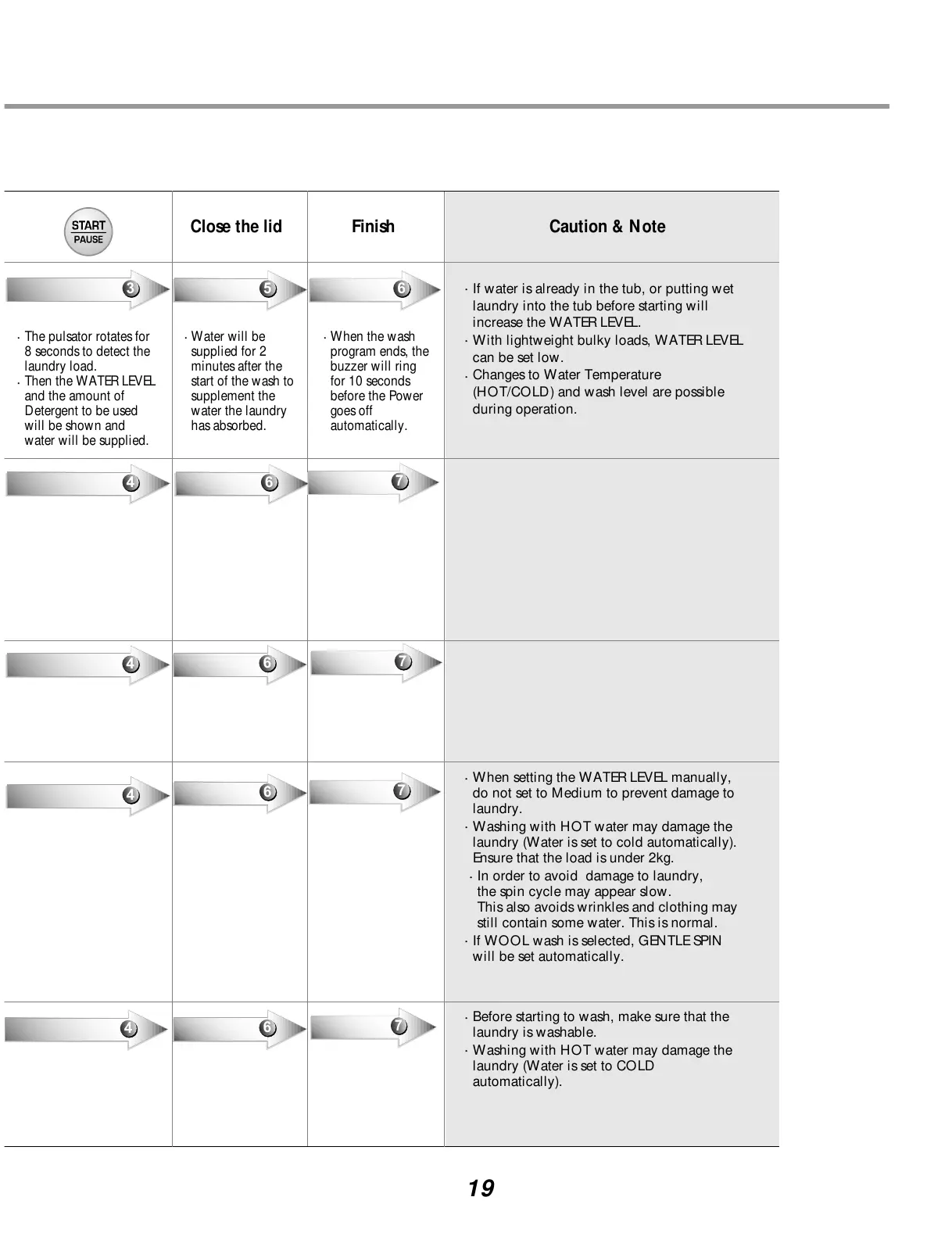 (HOT/COLD) and wash level are possible