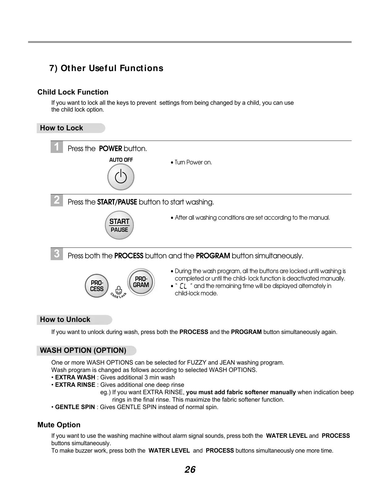 If you want to use the washing machine without alarm signal sounds, press both the WATER LEVEL and PROCESS